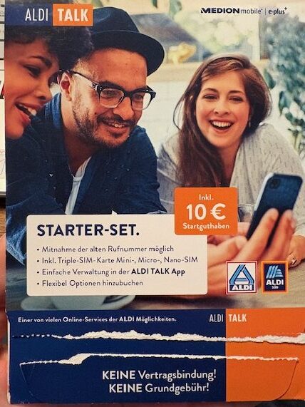 ALDI TALKの店舗でスターターキットを購入し、オンラインで本人確認(ビデオ認証)を通して開通。 - 回線はO2(Telefonica)